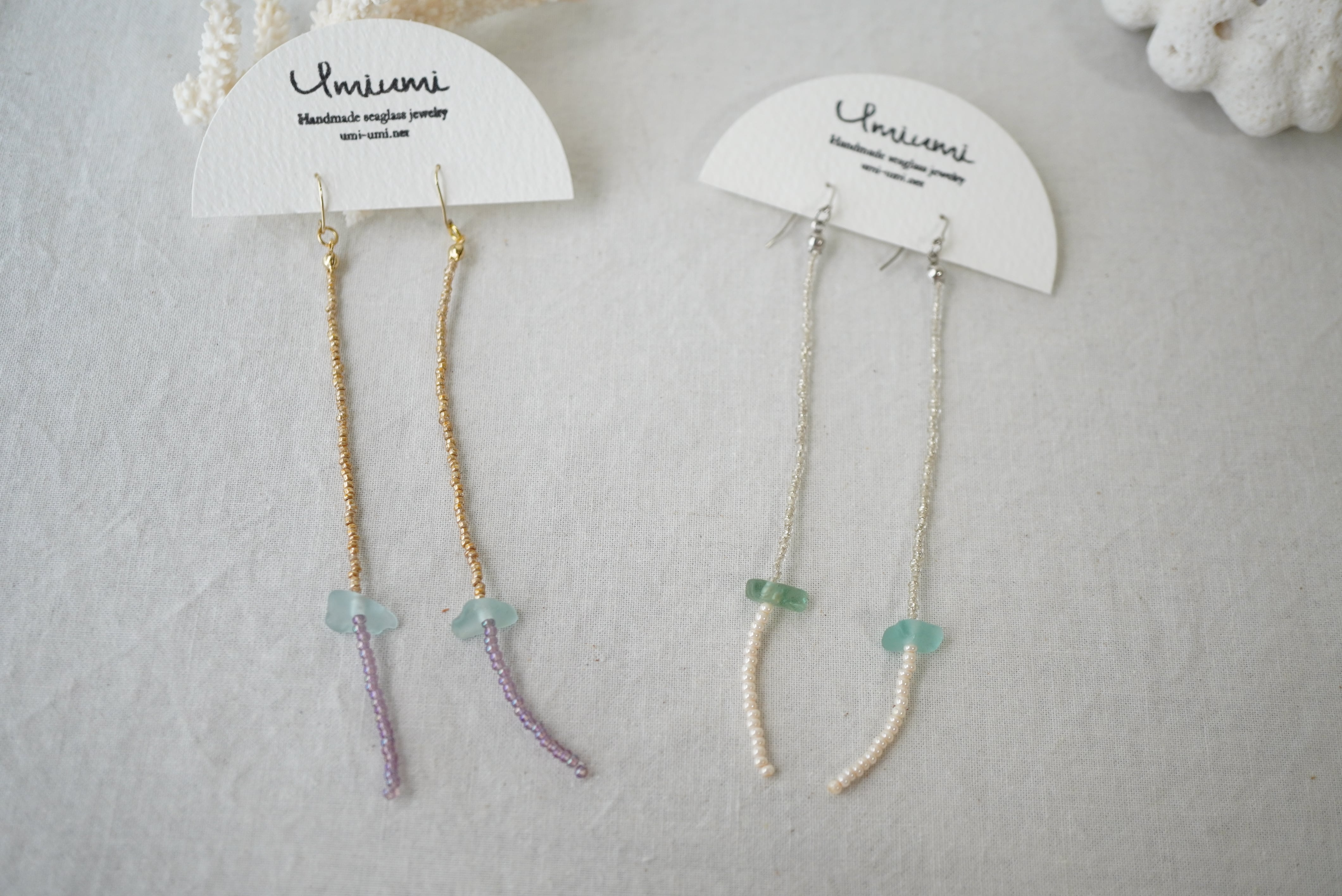 材質:ピアス金具(アレルギー非対応)、ビーズ、シーグラス