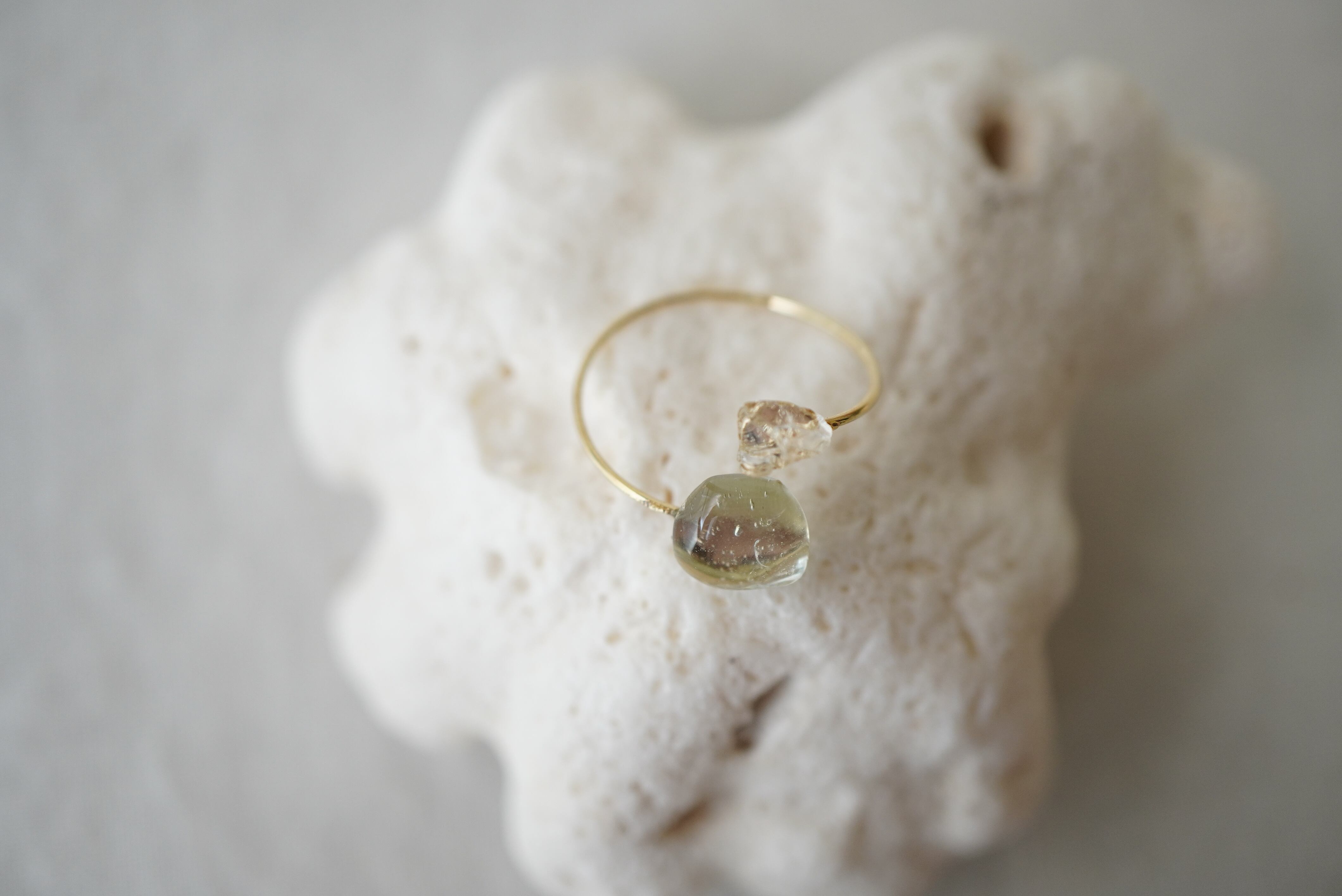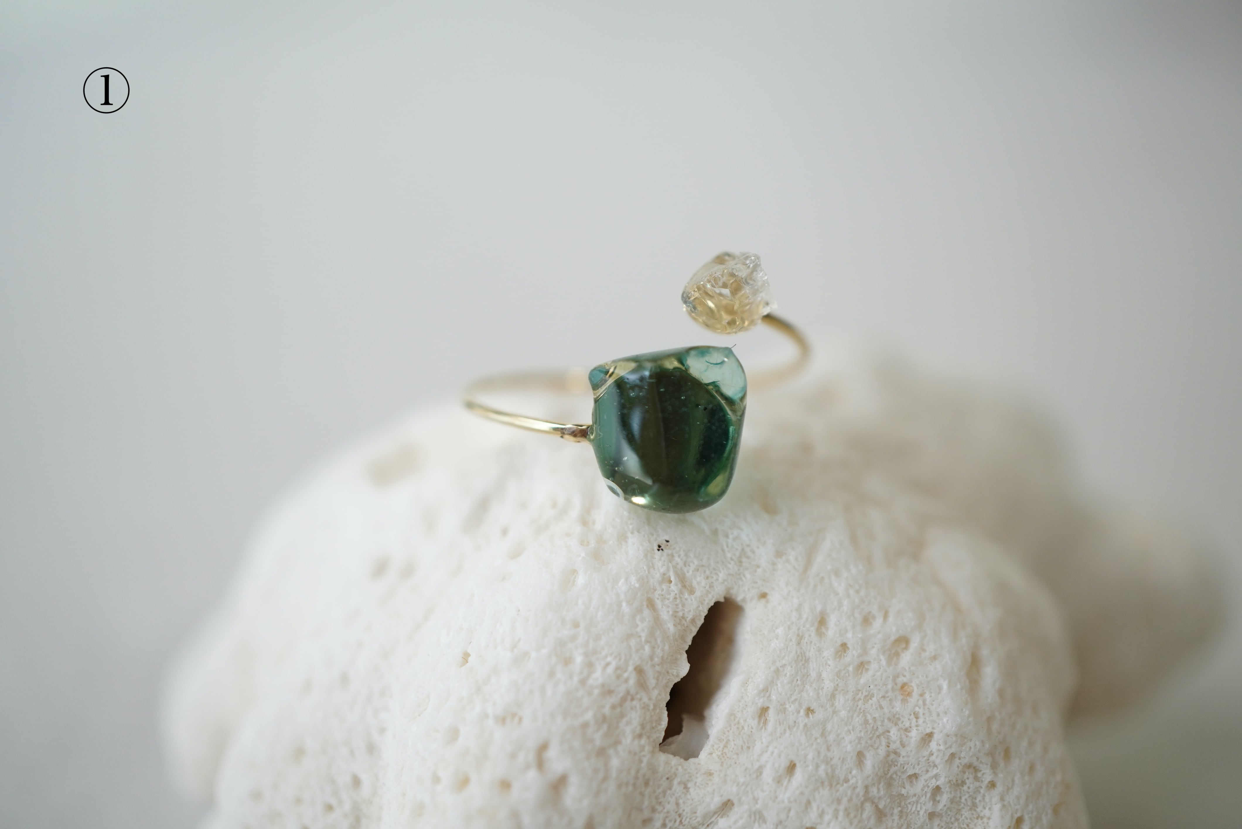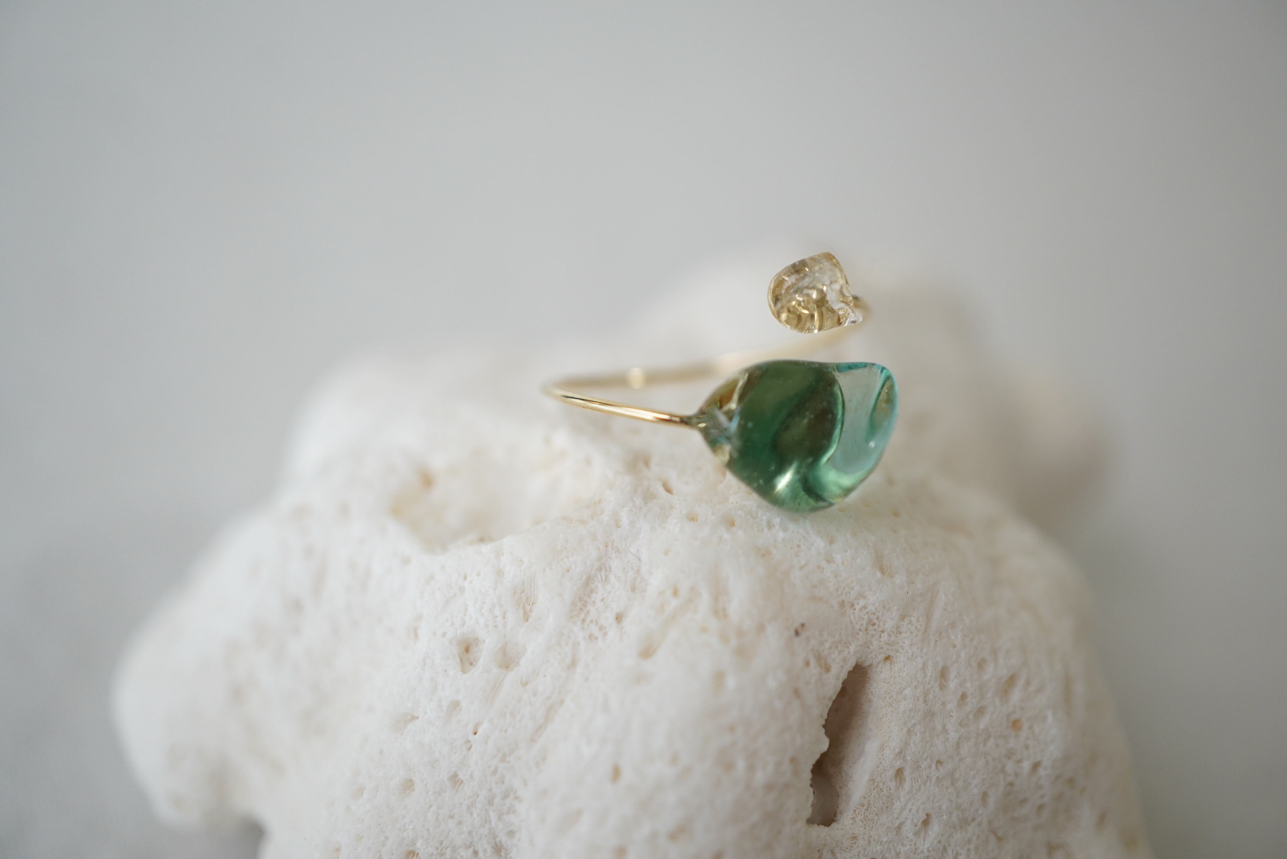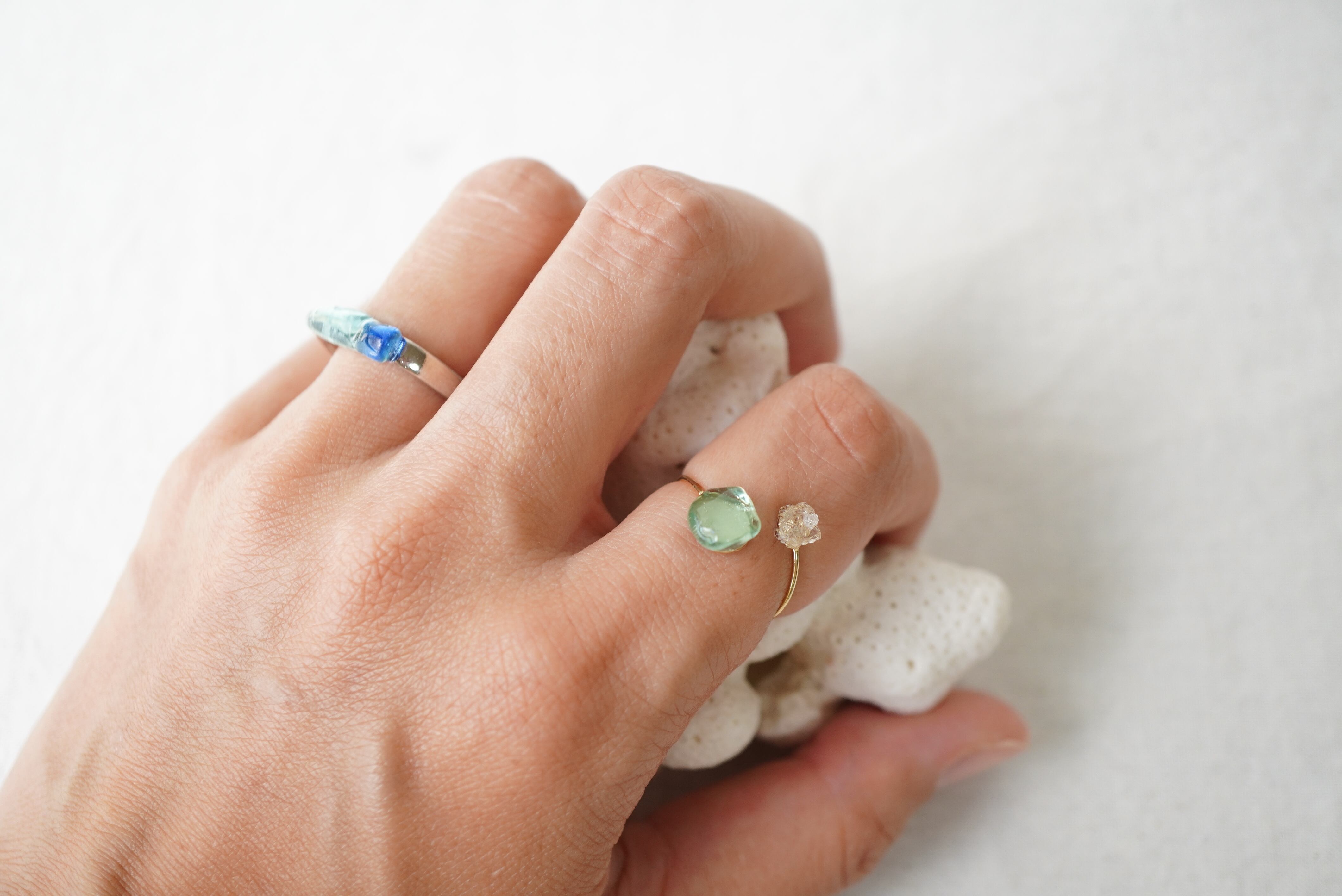 シーグラスと琉球ガラスがキラリと輝くシンプルなリングです。