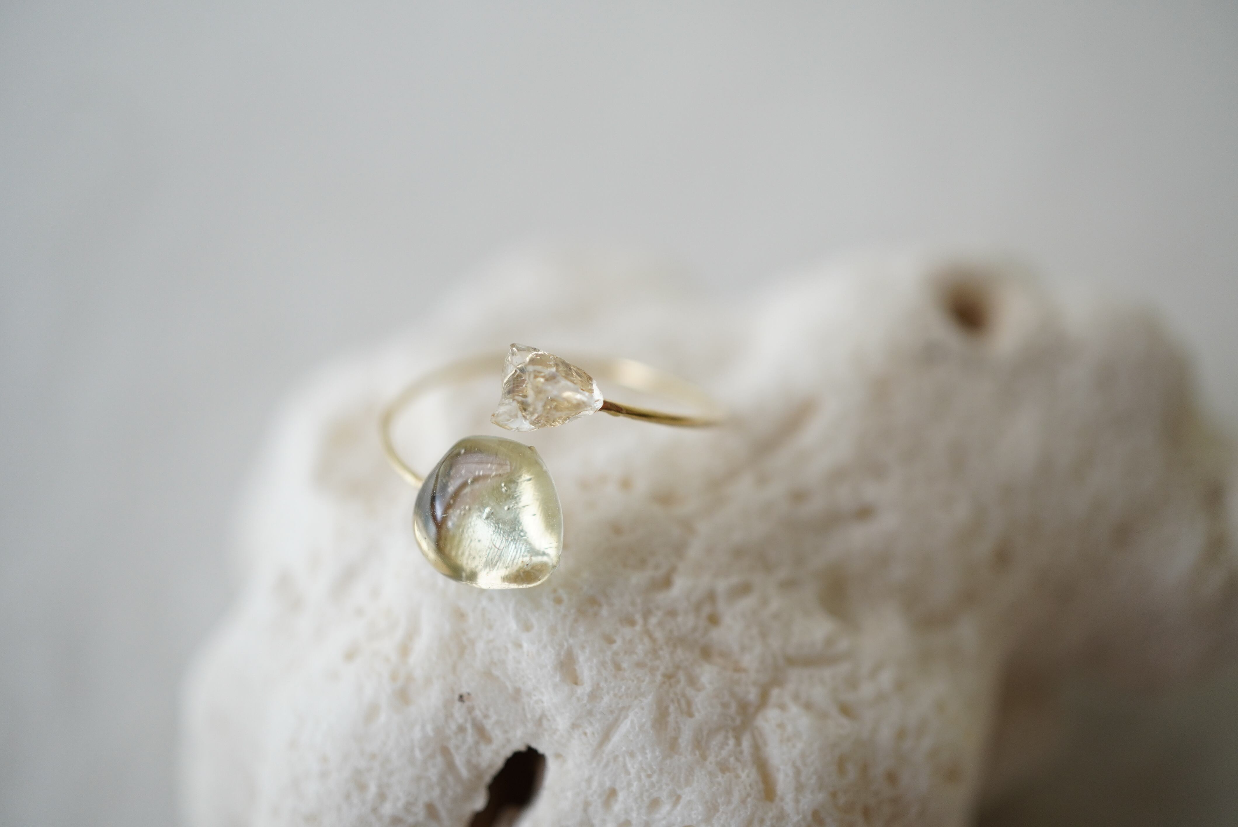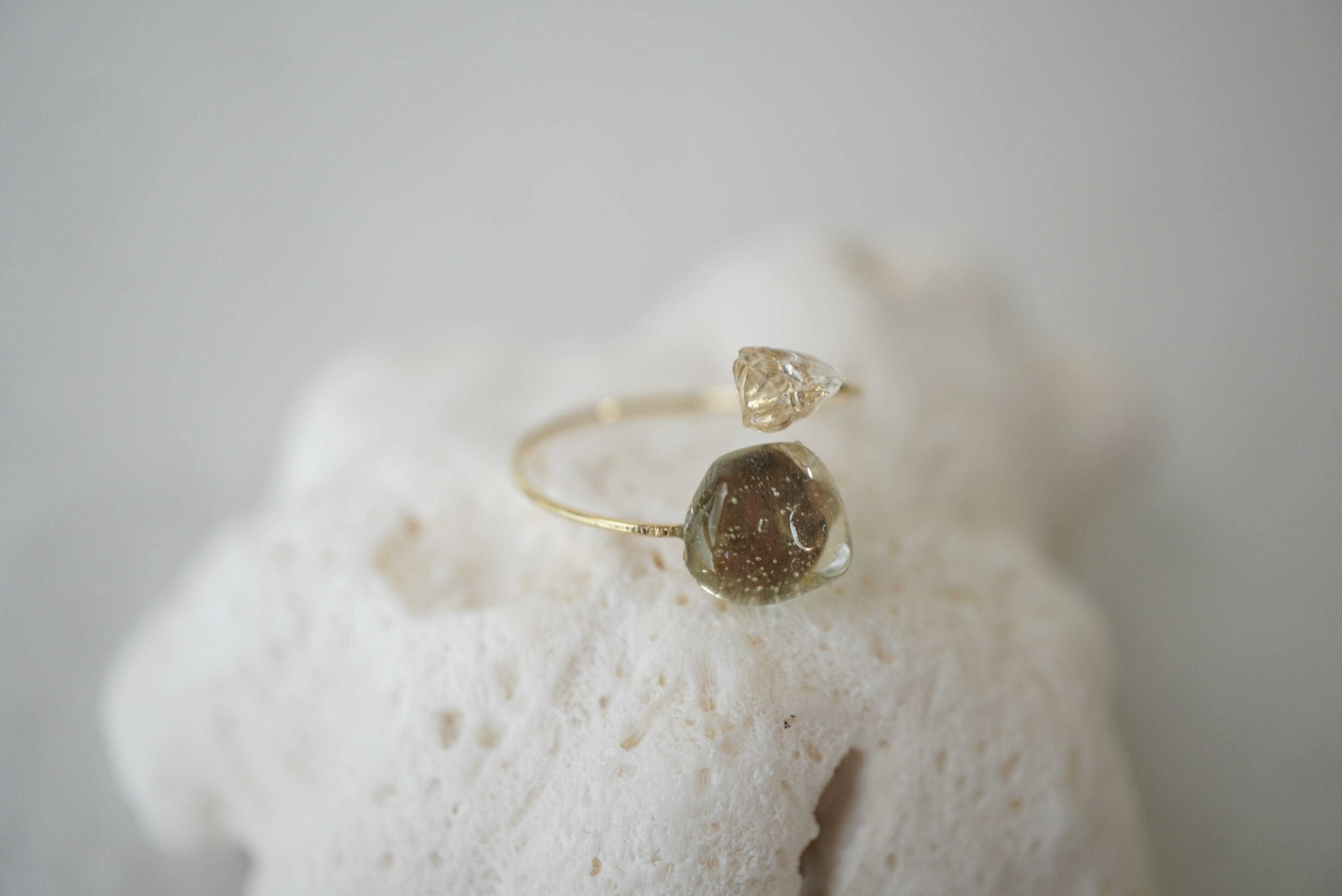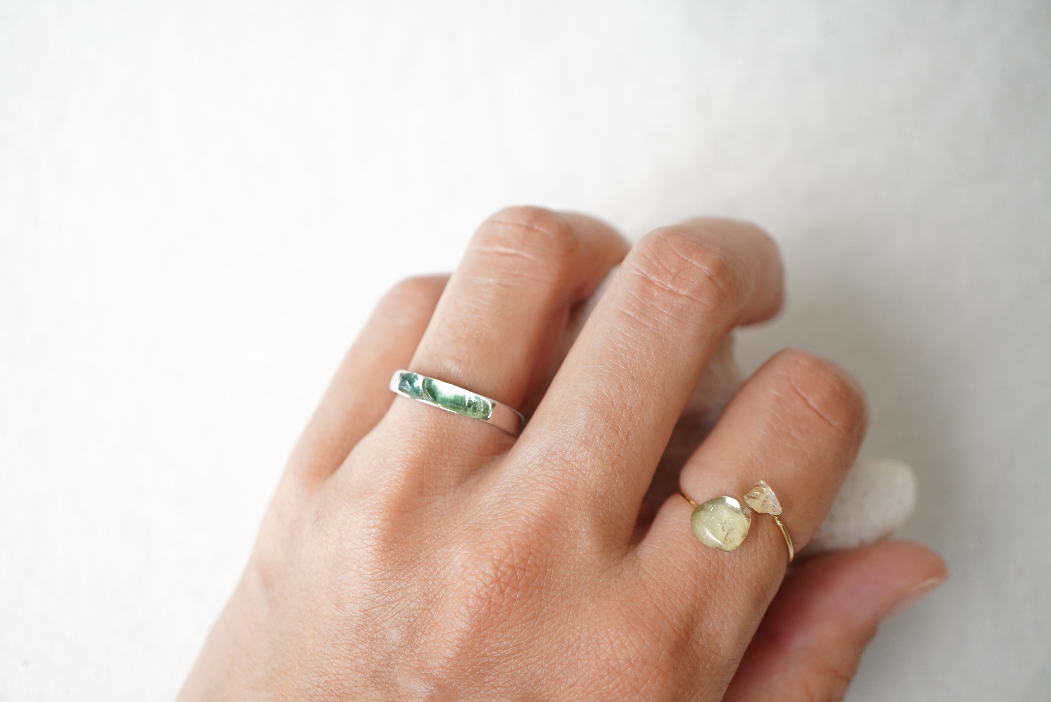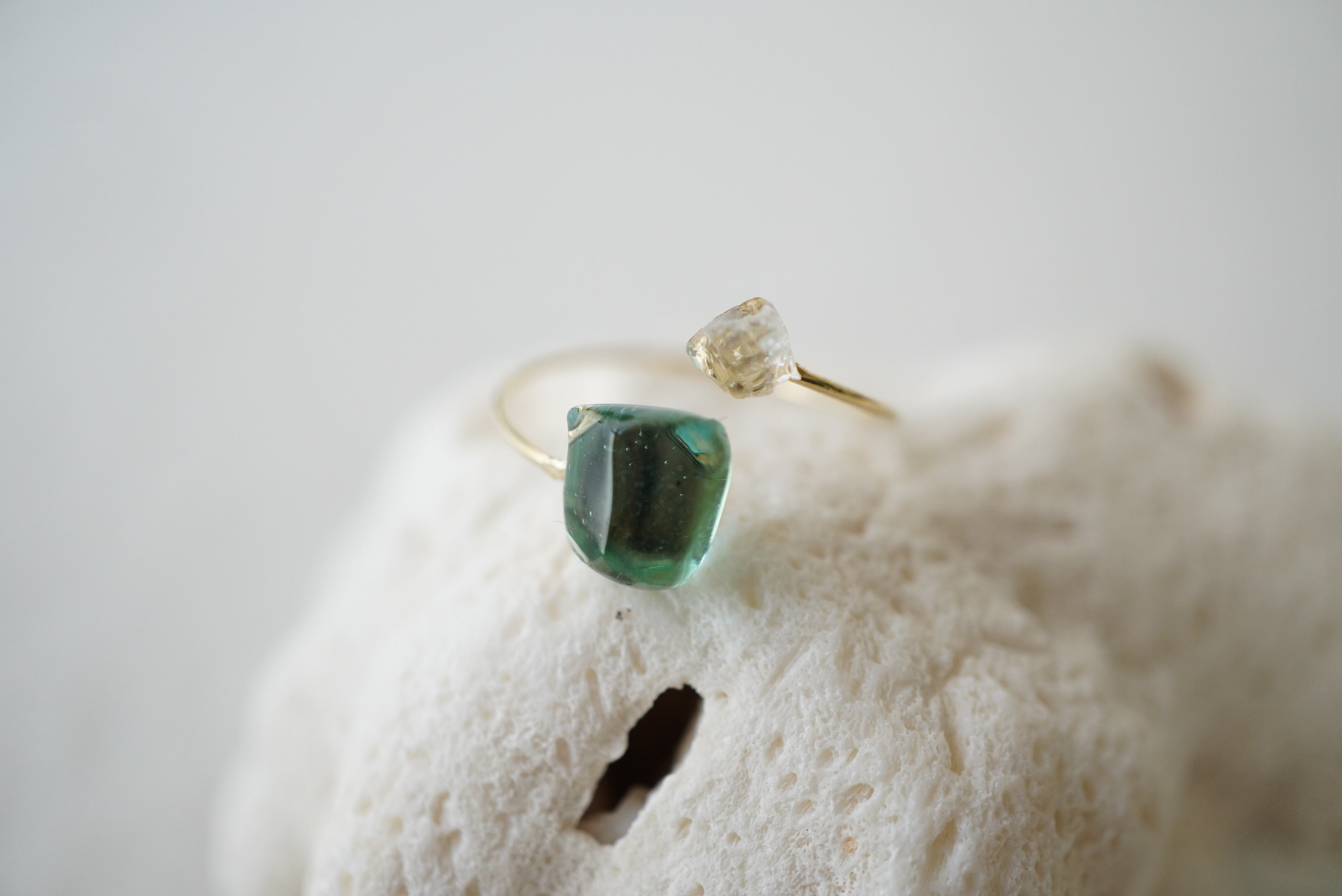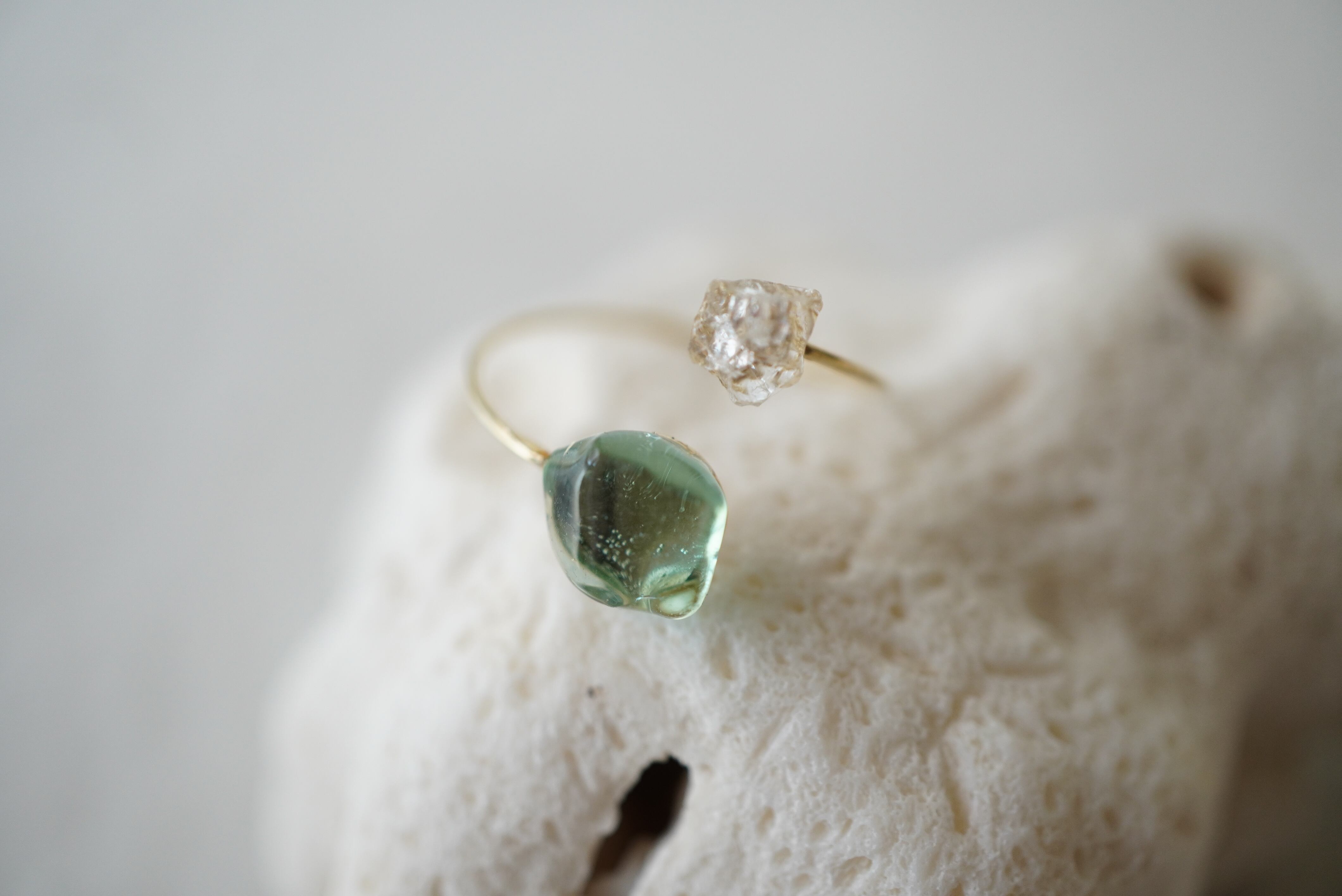 シーグラスと琉球ガラスがキラリと輝くシンプルなリングです。