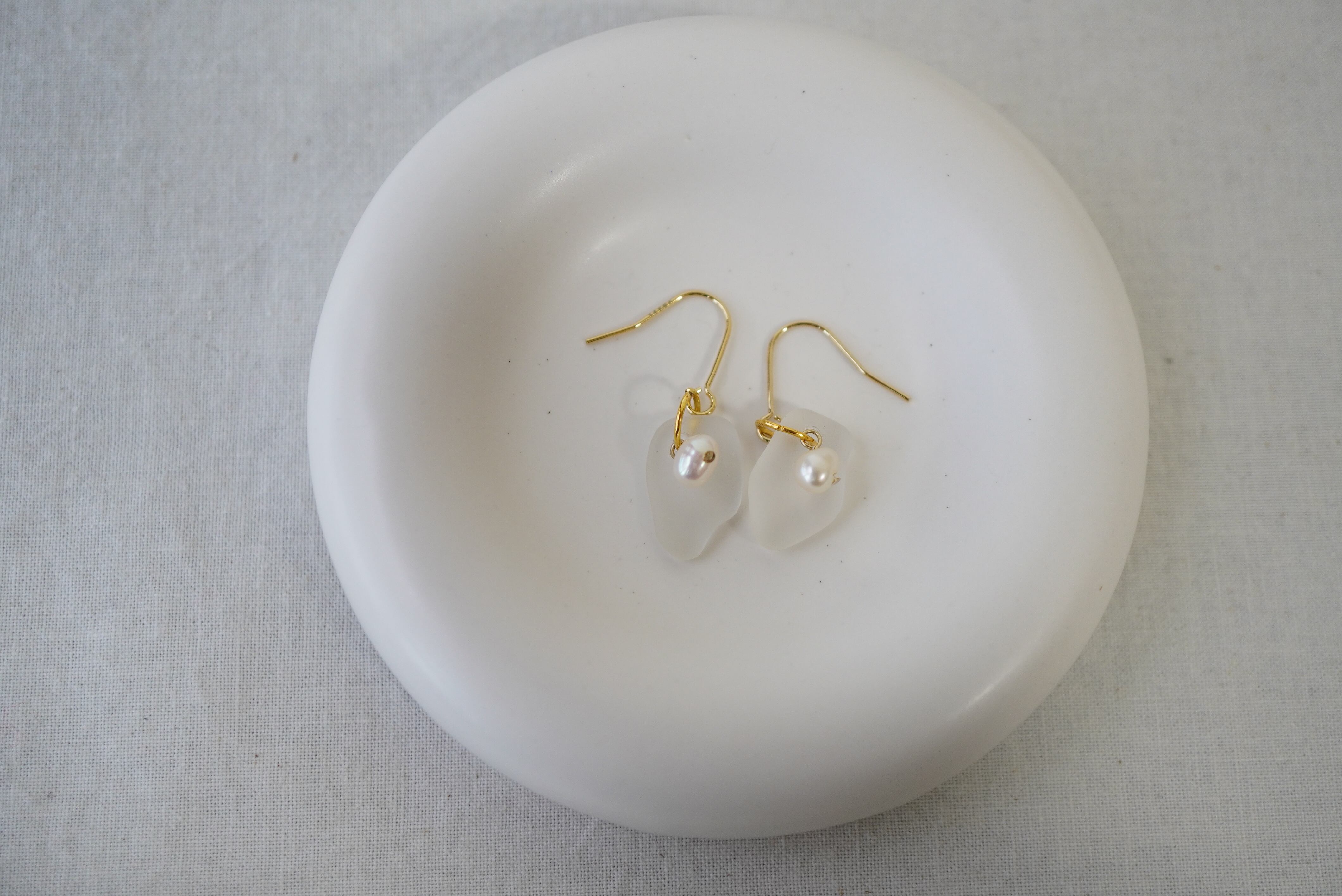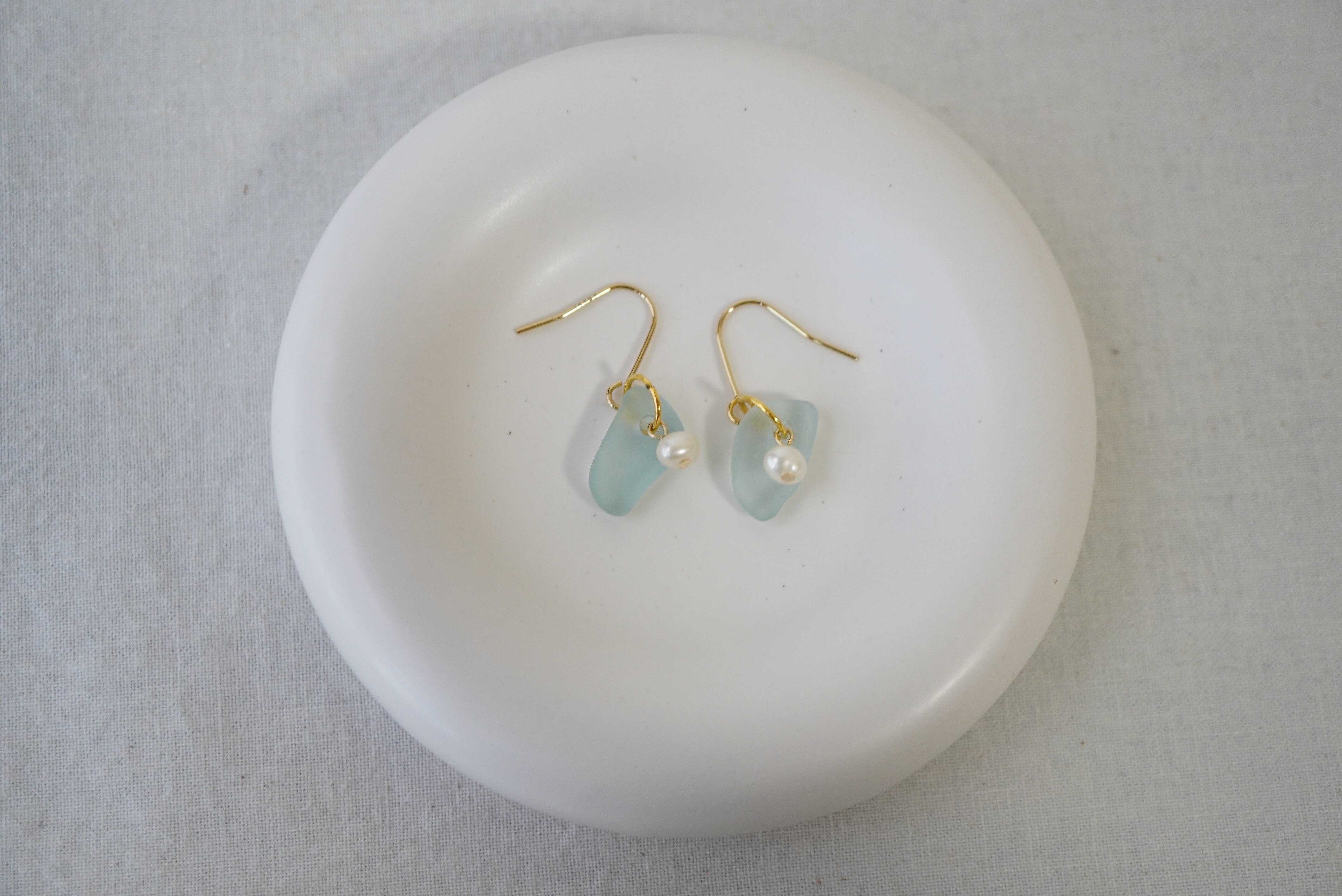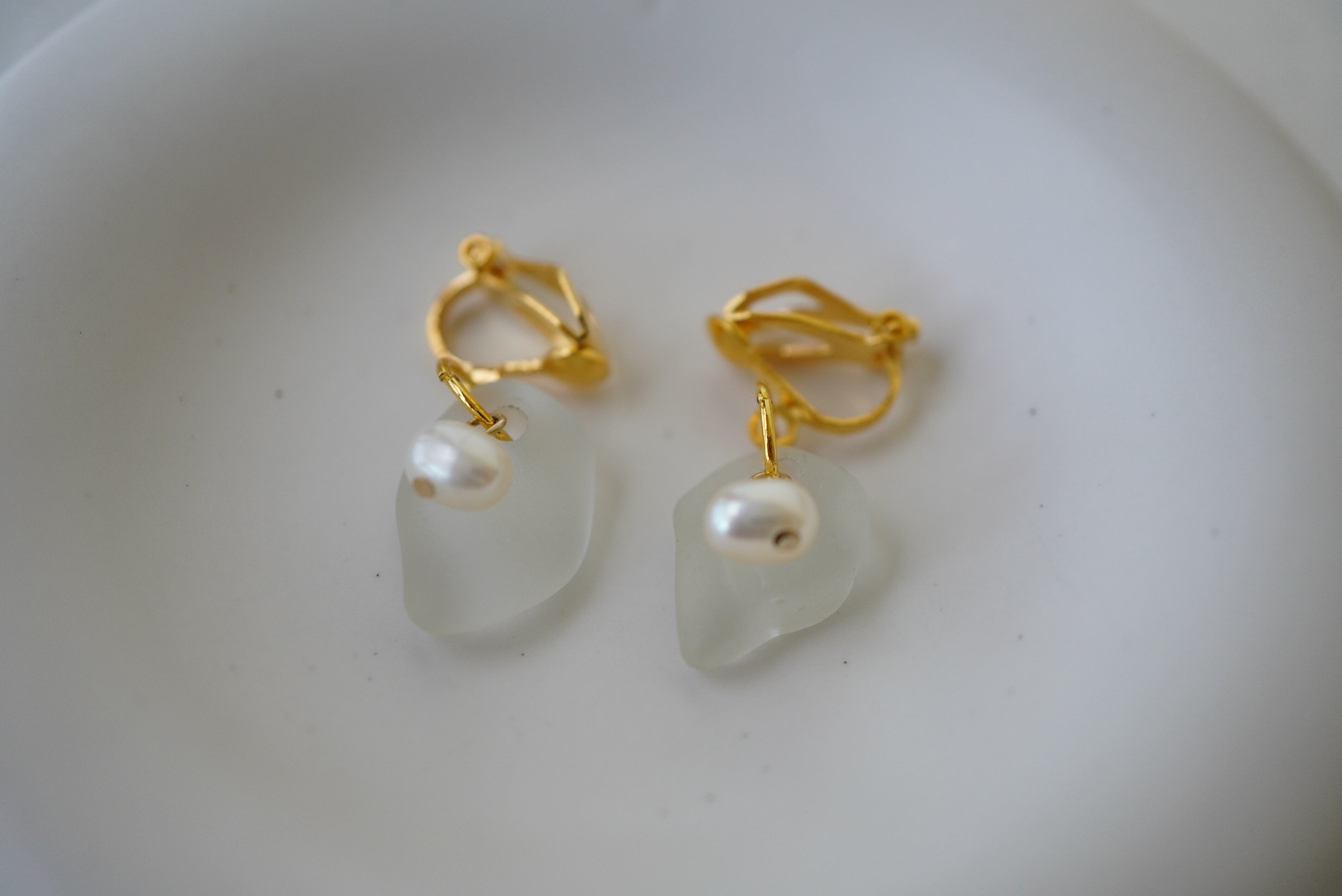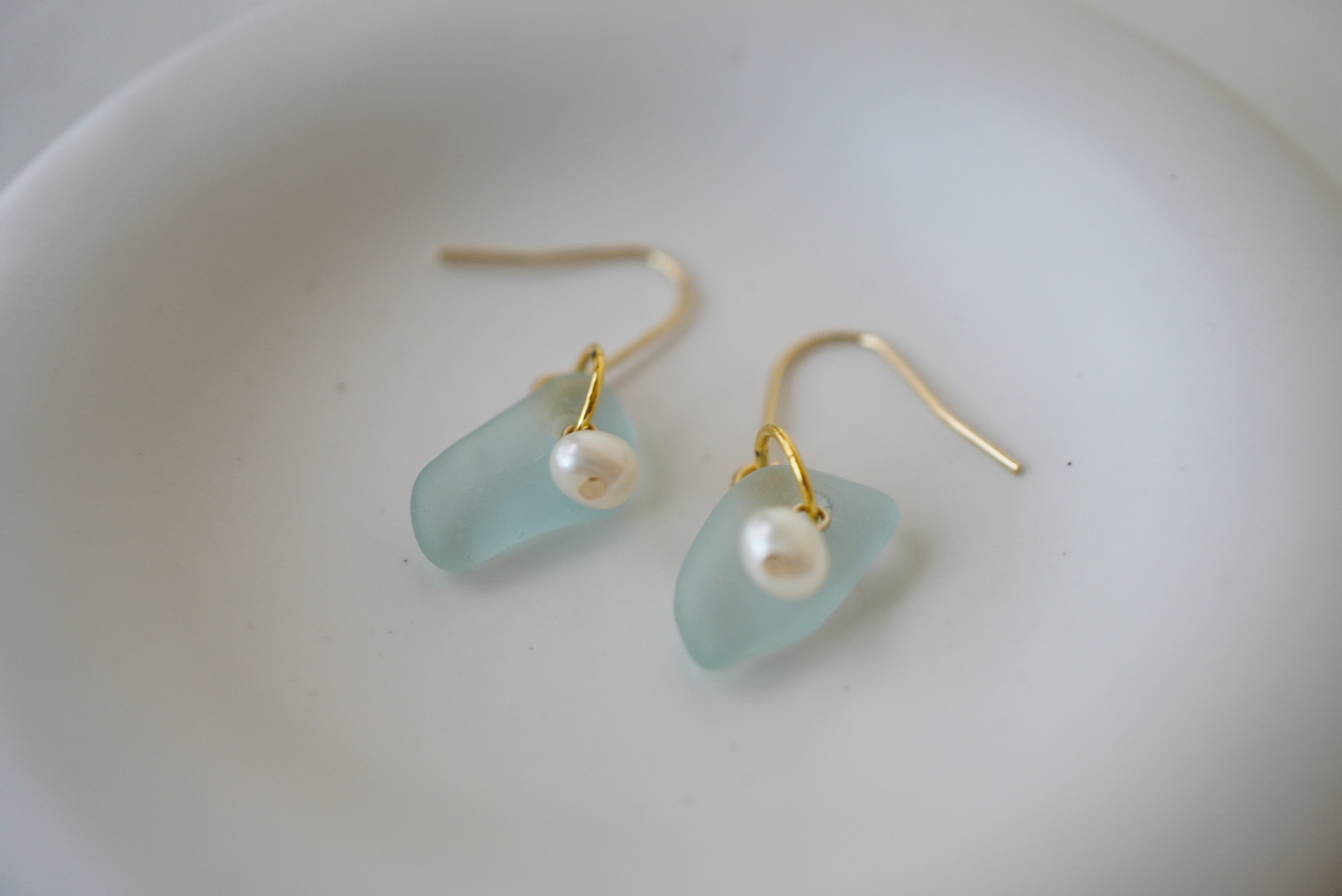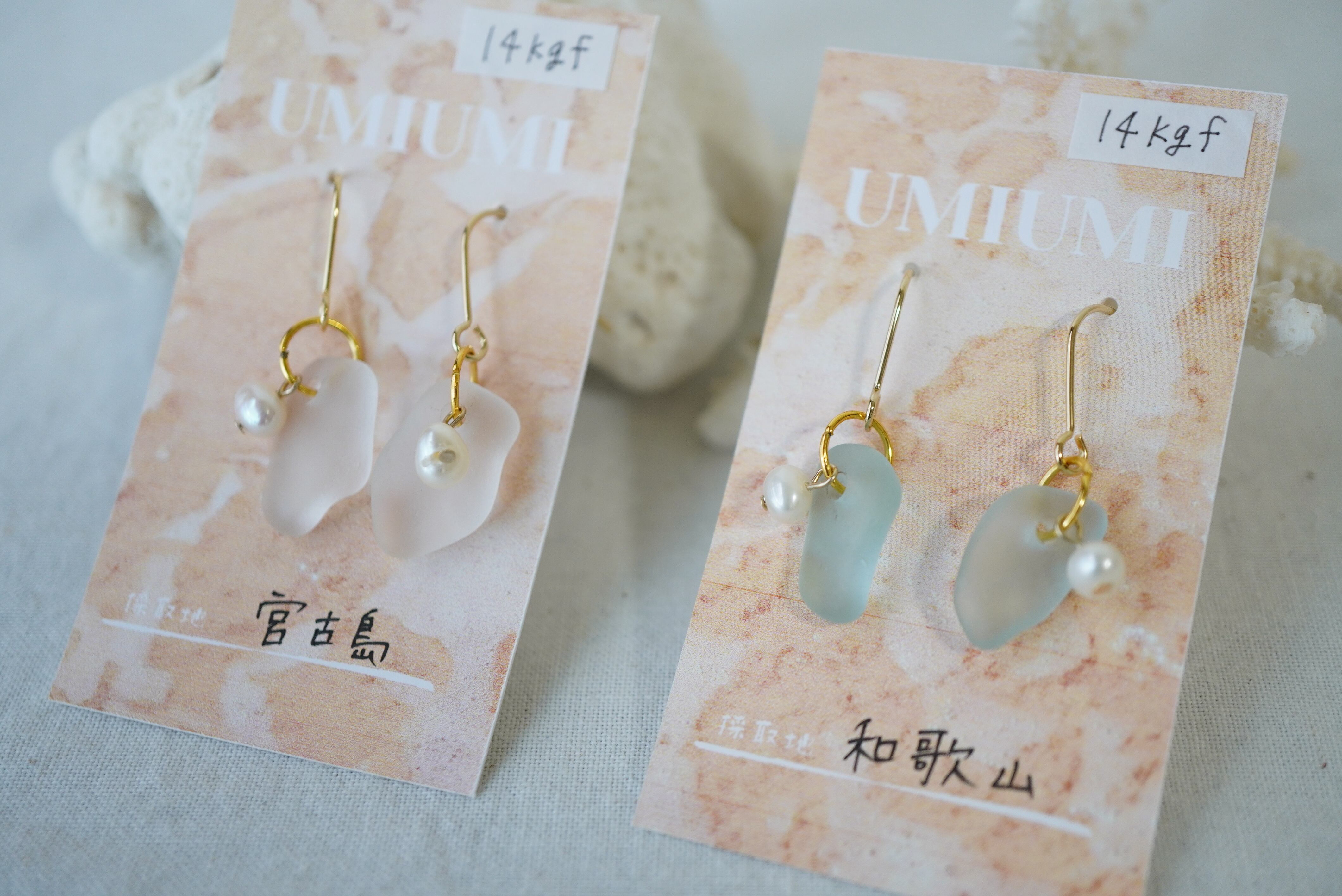 材質:ピアス金具(14kgf)、イヤリング金具(アレルギー非対応)、淡水パール、シーグラス(宮古島、和歌山)
