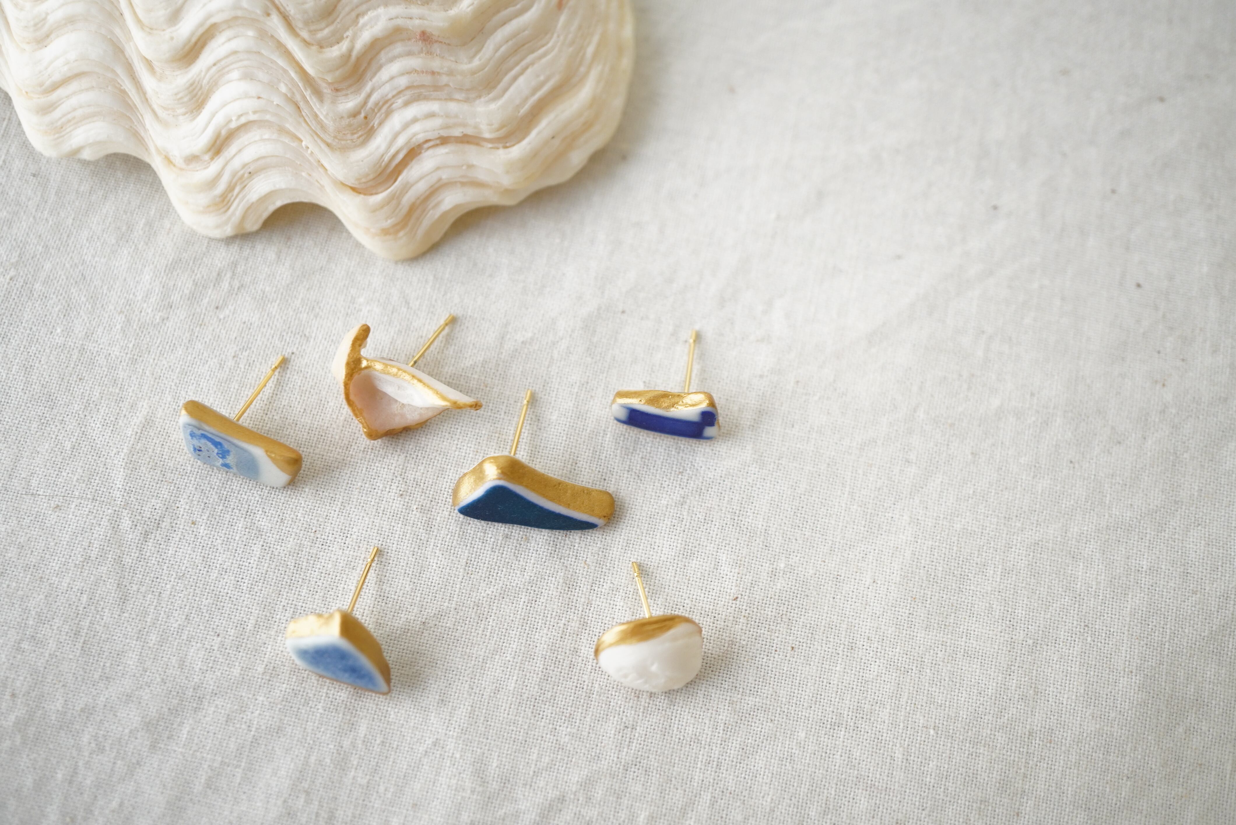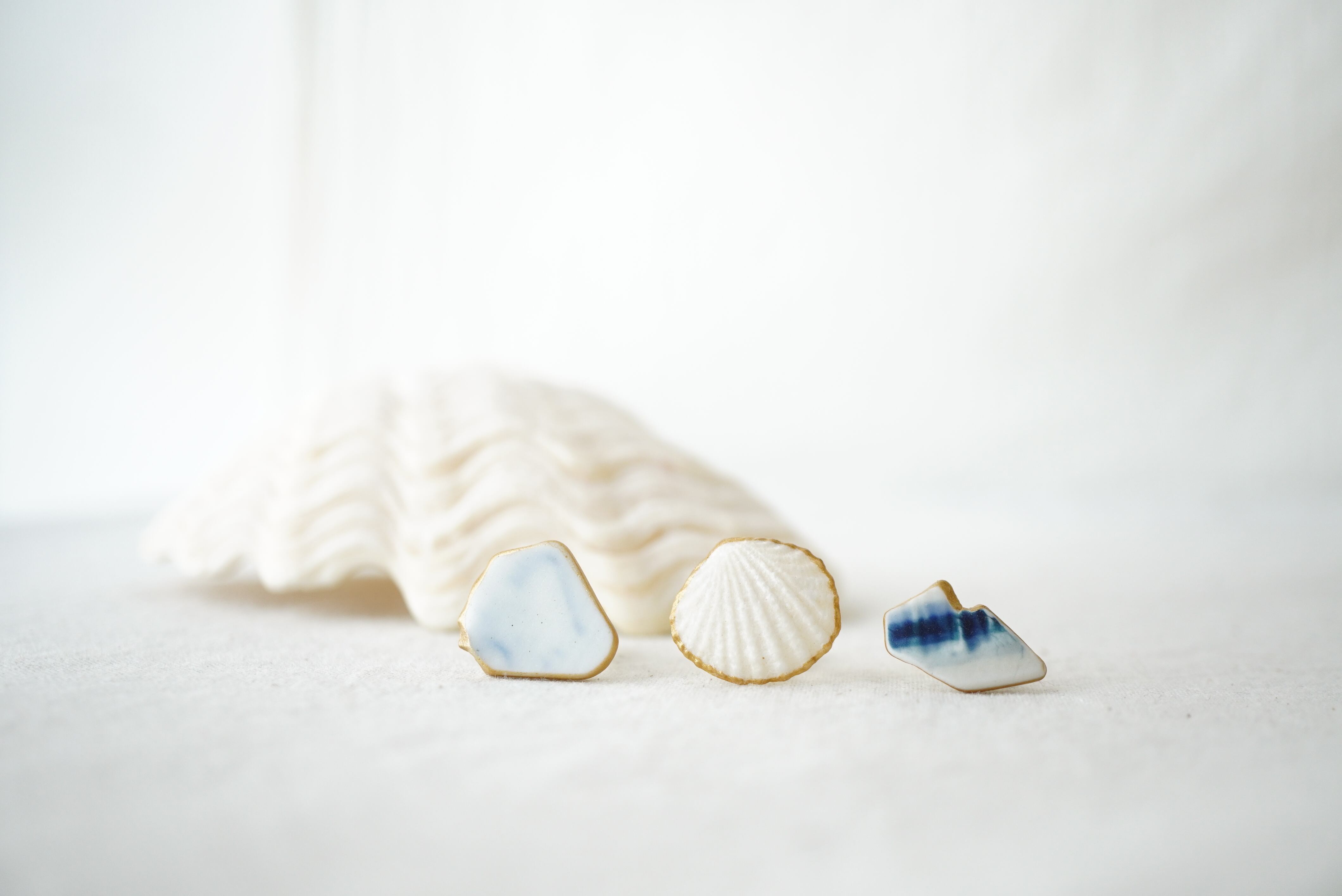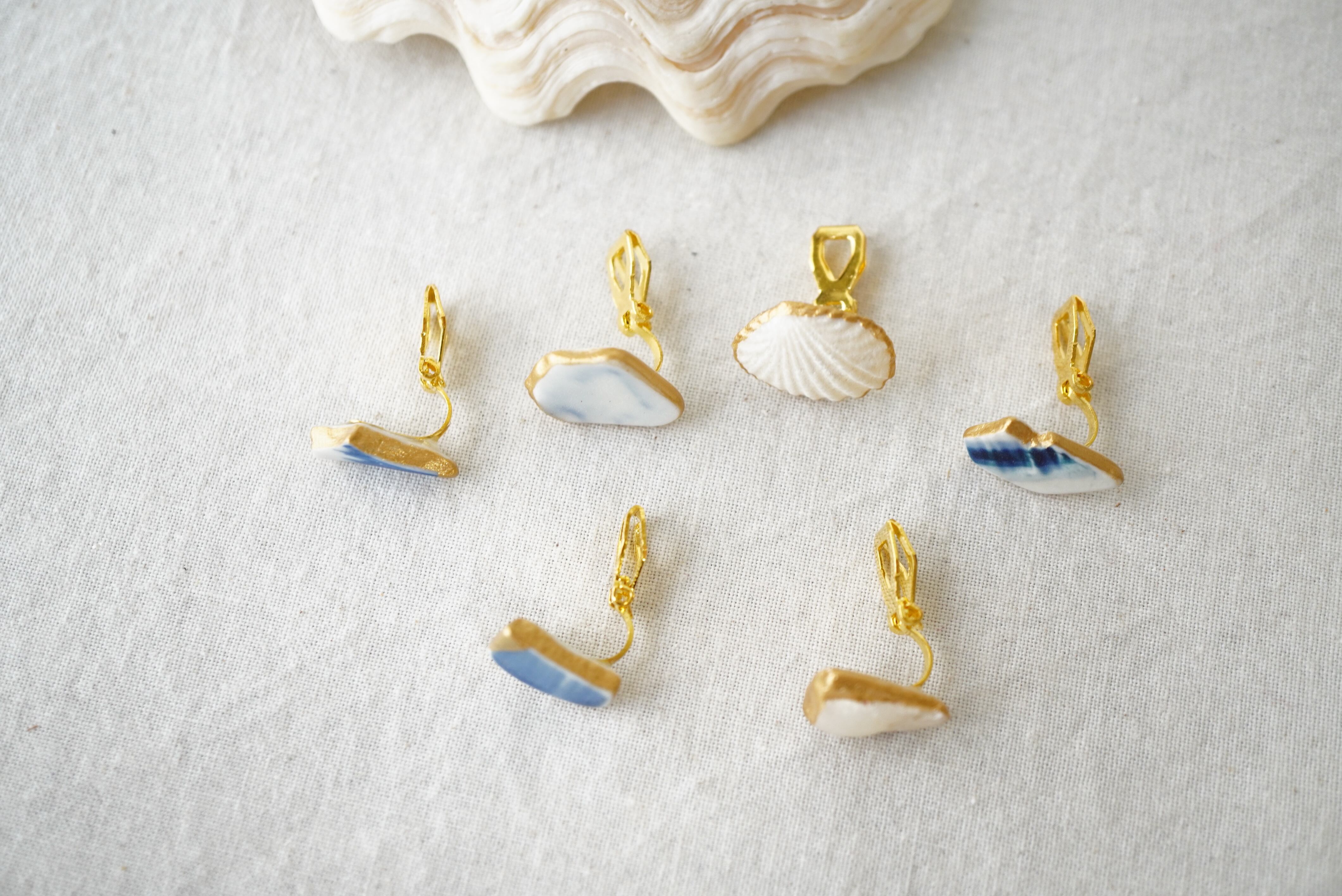 材質:ピアス金具(サージカルステンレス)イヤリング金具(アレルギー非対応)、貝殻、シーグラス(陶器)